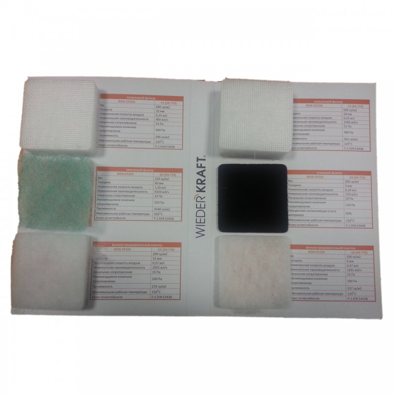Потолочный фильтр WDK-CIF600 2,4м х 20м Описание товара Потолочный фильтр WDK-CIF600 2,4м х 20м Потолочные фильтра, изготавливаются из полностью синтетического полиэфирного волокна и с одной стороны пропитаны специальным составом, препятствующим пиллингу, т. е. «отшелушиванию» материала, а также исключающим миграцию пыли в толще материала и отрыв частиц от поверхности фильтра. Основные характеристики фильтра:  вес 500г/м2; толщина 20мм; начальное сопротивление 21Па; Рекомендуемое конечное сопротивление 400Па; Ср. эффективность 91,3%; Номинальная скорость воздушного потока 0,27м/с; Краскоемкость 361г/м2; Класс очистки F5; Класс огнестойкости F1; Максимальная температура эксплуатации 120Сº