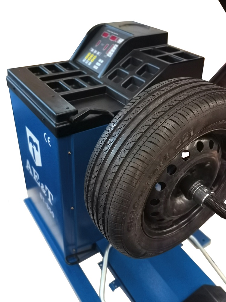 Универсальный балансировочный станок с пневматическим подъемным устройством для балансировки колес весом до 135 кг. AET ВТ-850