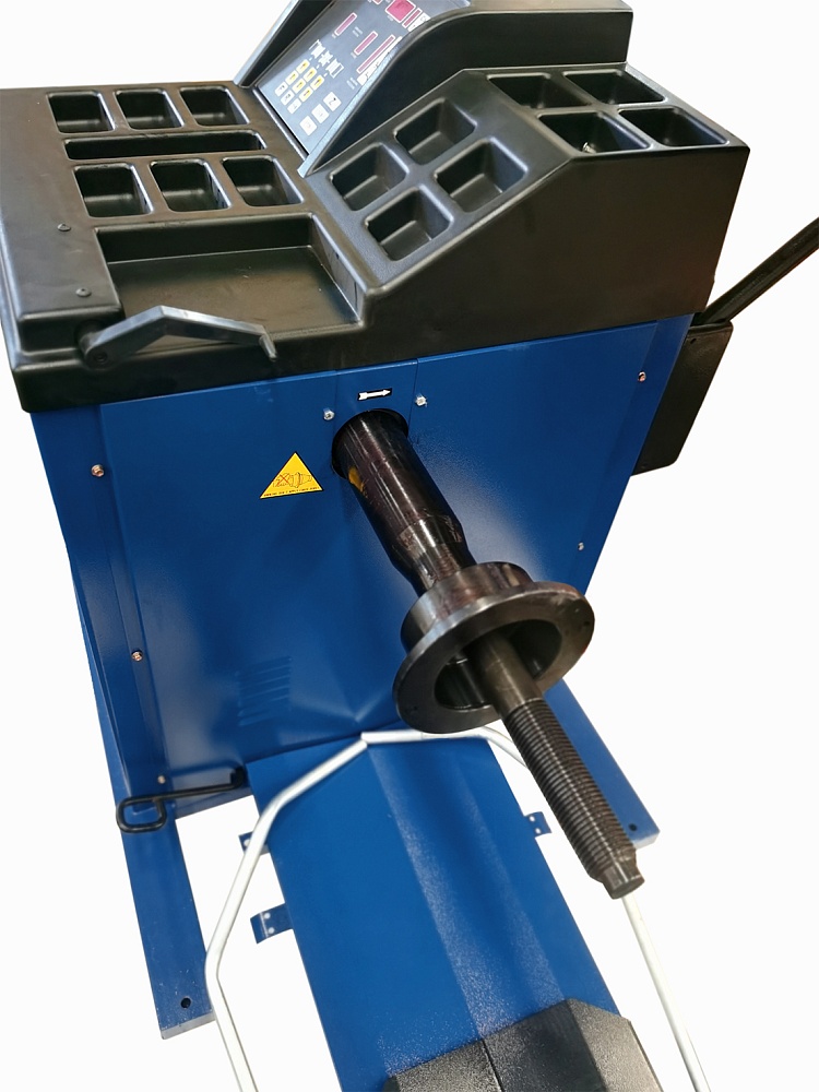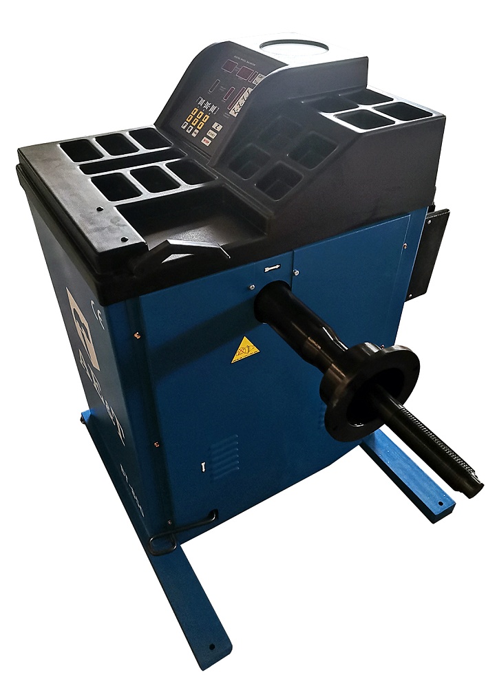 Балансировочный станок, выносной дисплей, автоматическое измерение диаметра и вылета, автостоп колеса для установки грузика, подсветка места установки,   диаметр диска Ø 12-24", ширина диска 1,5-12", вес колеса до 65кг., мотор 220V/0,257 kWt, точность балансировки + 1г.