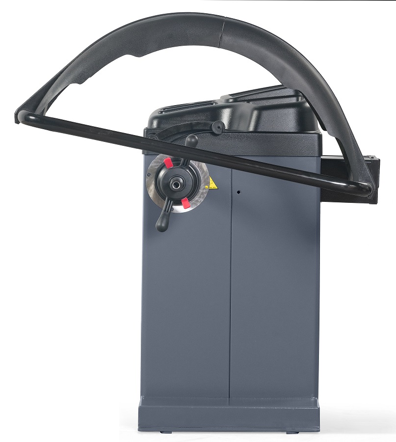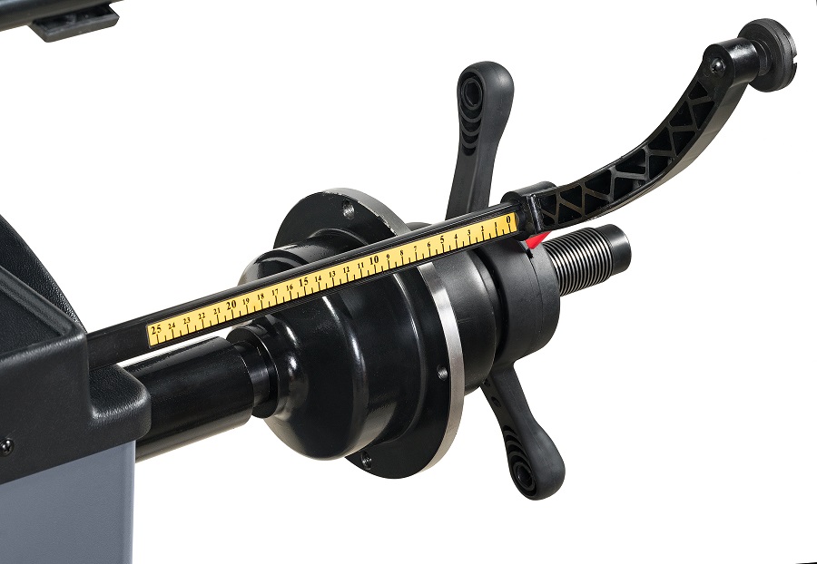 Бесконтактный ультразвуковой датчик измерения ширины и электромеханический вал увеличивают производительность станка. Точечный лазерный указатель места установки грузов увеличивает скорость установки груза и повышает производительность работы оператора. Груз можно установить вручную абсолютно точно в расчетную точку (по углу и по дистанции) без применения зажима на линейке. Эффективен для балансировки легкосплавных дисков больших размеров.