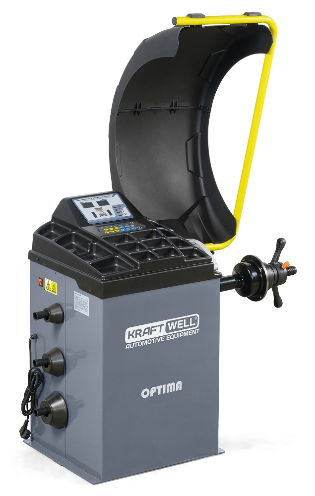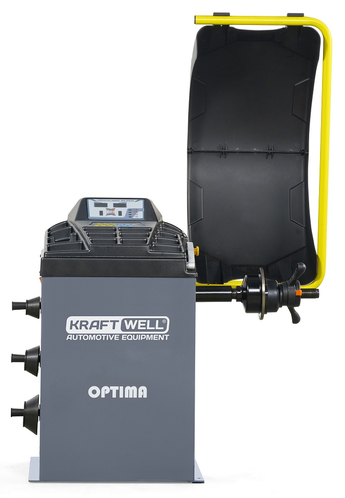 OPTIMA KraftWell Станок балансировочный, ручной ввод параметров, цифровой LED дисплей, напряжение 220 В, диаметр дисков 10-24", вес колеса 65 кг, вал 36 мм.