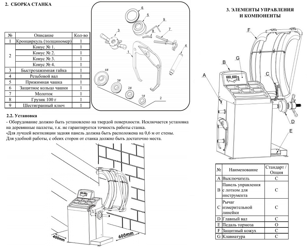 Балансировочный станок, выносной дисплей, автоматическое измерение диаметра и вылета, автостоп колеса для установки грузика, подсветка места установки,   диаметр диска Ø 12-24", ширина диска 1,5-12", вес колеса до 65кг., мотор 220V/0,257 kWt, точность балансировки + 1г.