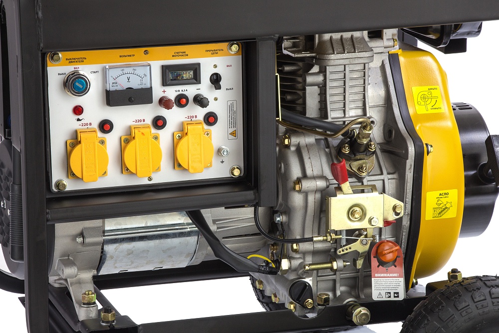 Генератор дизельный DD6300Е, 5.0 кВт, 220 В/50 Гц, 15 л, электростартер Denzel