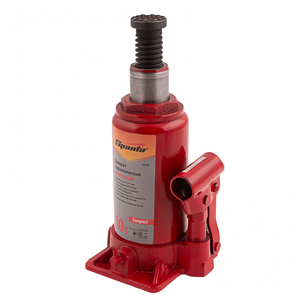 Гидравлический бутылочный домкрат Sparta Compact 50335 предназначен для подъема грузов весом до 10 т на высоту 190-370 мм. Существенно облегчает рабочий процесс, т.к. не требует больших усилий от пользователя. Домкрат будет полезен в автосервисе и гараже для проведения технического обслуживания авто.