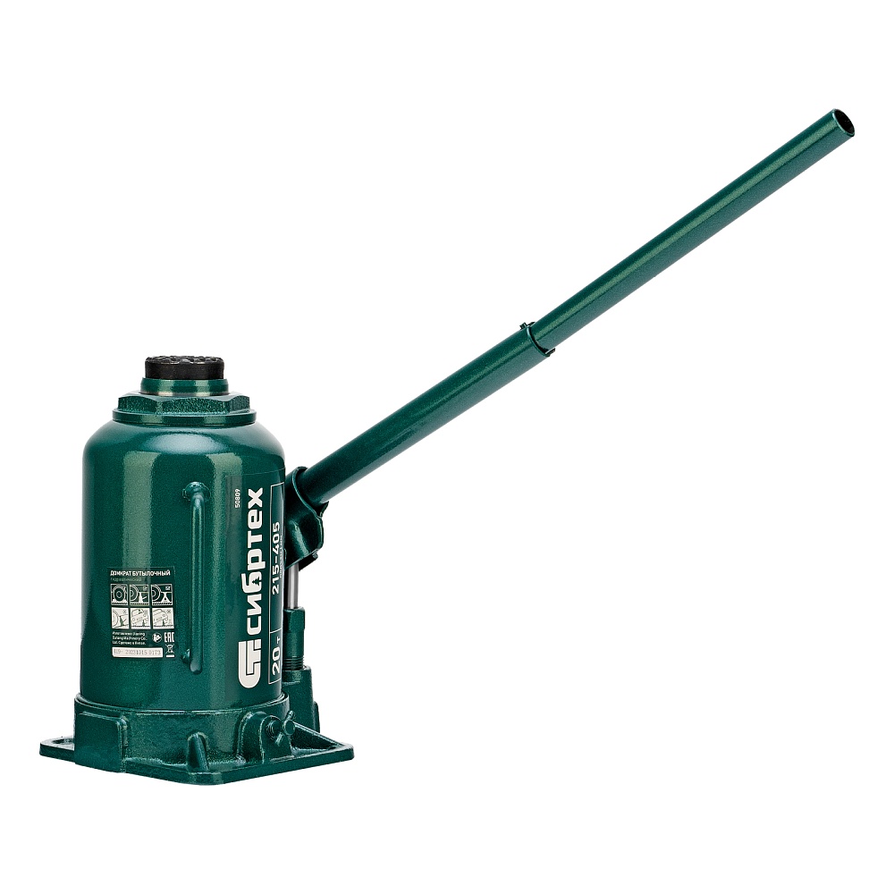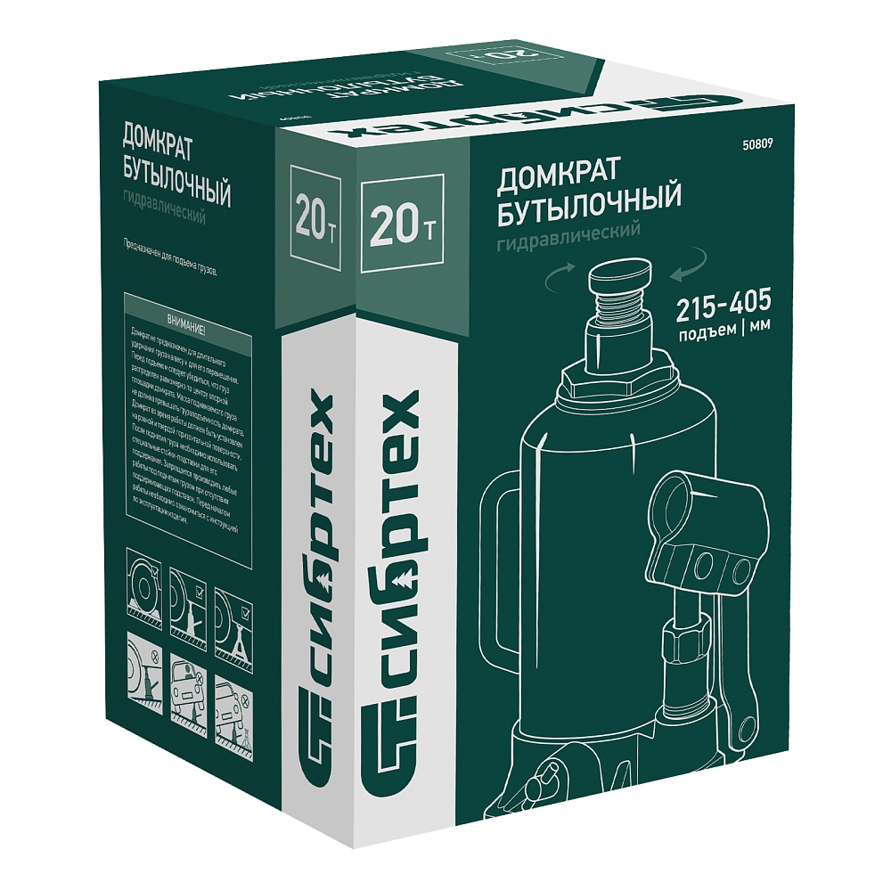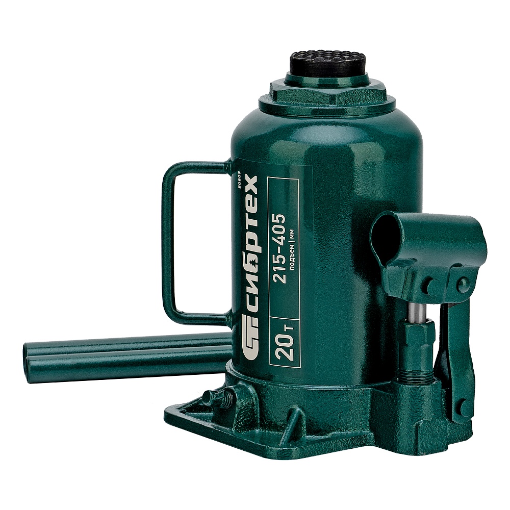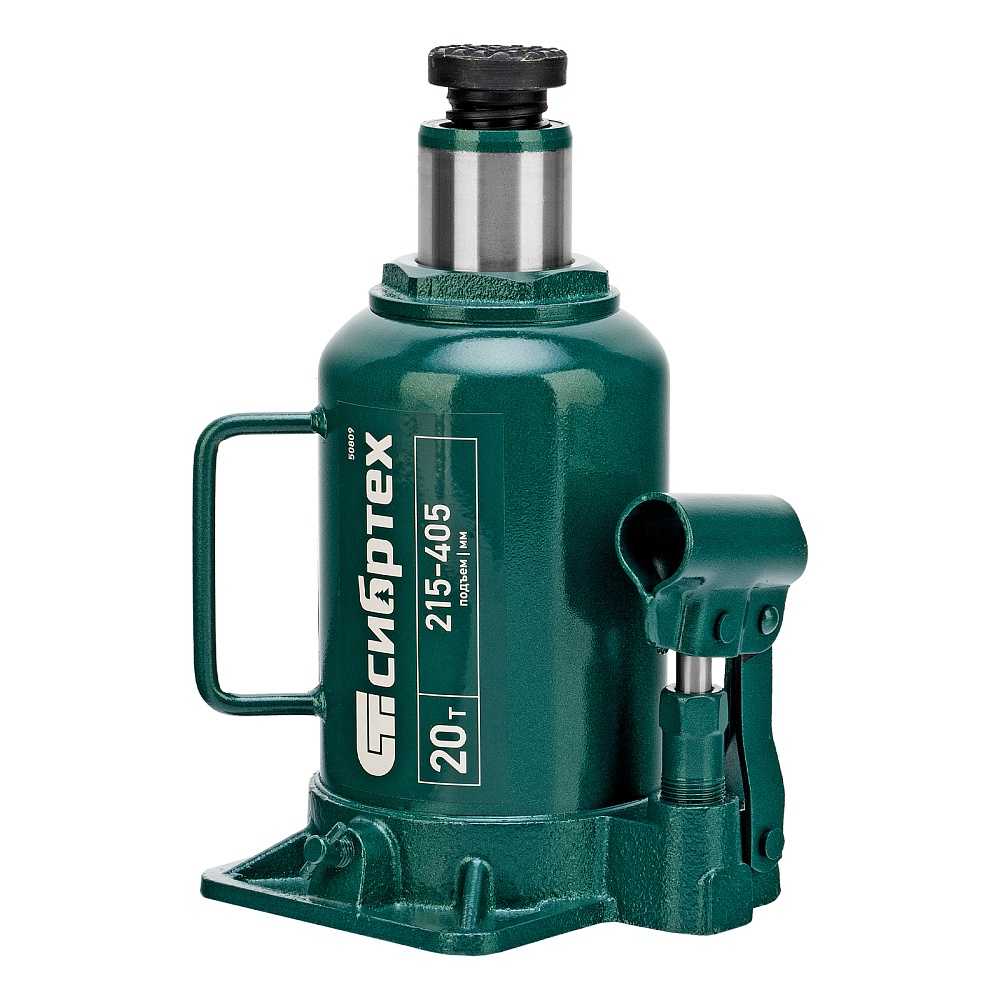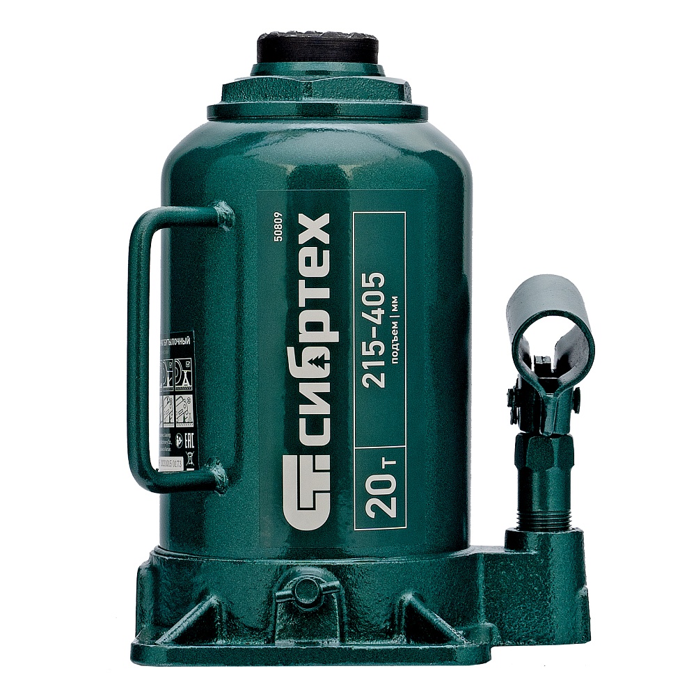 Домкрат гидравлический бутылочный Сибртех 50809 предназначен для подъема грузов массой до 20 т на высоту от 215 до 405 мм. Не требует больших усилий от пользователя и значительно облегчает рабочий процесс. Домкрат будет полезен при проведении техобслуживания машины в автосервисе или гараже.