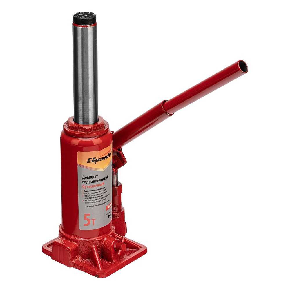 Гидравлический бутылочный домкрат Sparta Compact 50333 предназначен для подъема грузов весом до 5 т на высоту 180-340 мм. Существенно облегчает рабочий процесс, т.к. не требует больших усилий от пользователя. Домкрат будет полезен в автосервисе и гараже для проведения технического обслуживания авто.