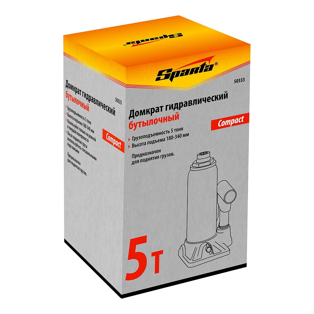 Домкрат гидравлический бутылочный 5 т, h подъема 180-340 мм Sparta Compact