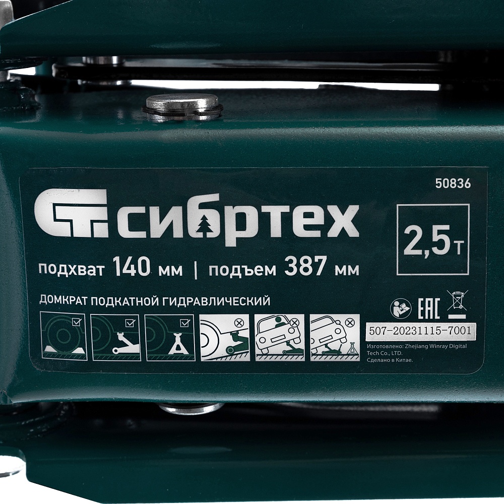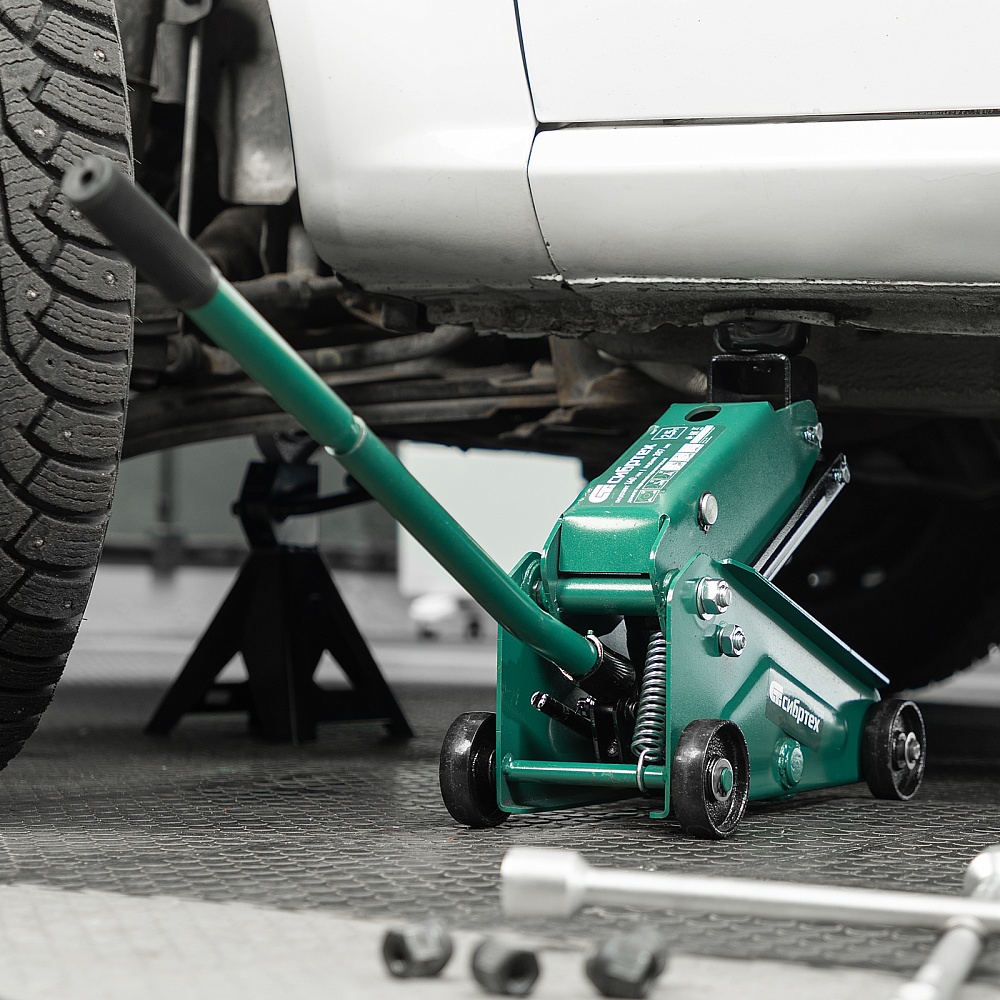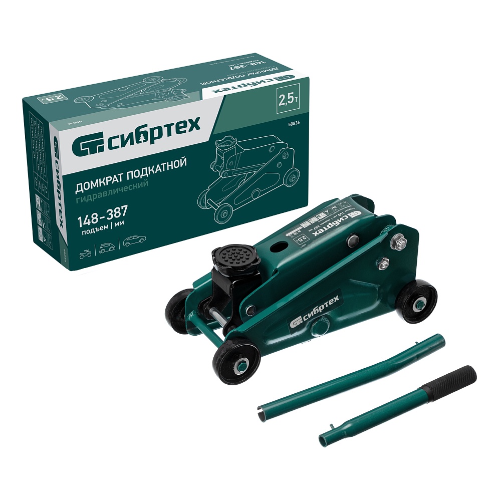 Гидравлический подкатной домкрат Сибртех 50836 с высотой подхвата 148 мм предназначен для подъема грузов массой до 2,5 т на высоту до 387 мм. Применяется для обслуживания автомобилей со стандартным клиренсом. Компактный домкрат подходит для самостоятельного использования автовладельцами.