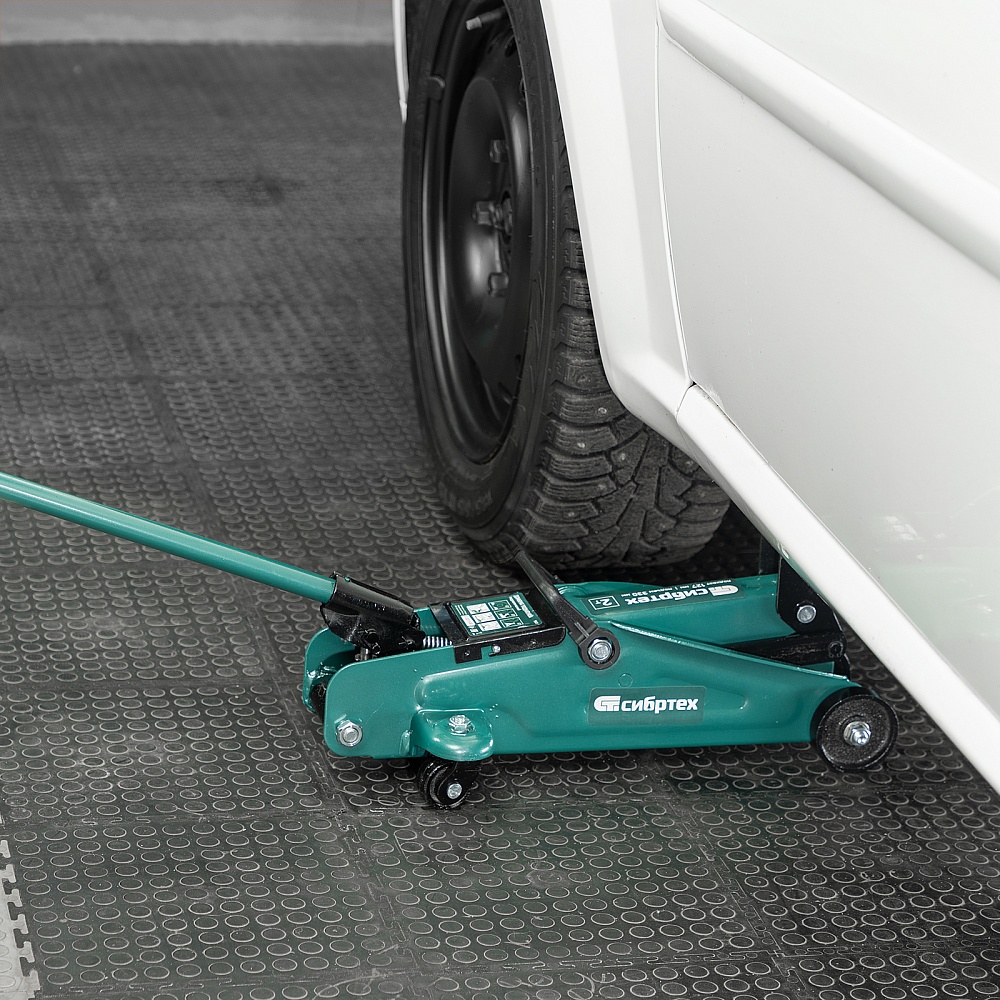 Гидравлический подкатной домкрат Сибртех 50833, поставляющийся в пластиковом кейсе, с высотой подхвата 127 мм, предназначен для подъема грузов массой до 2 т на высоту до 330 мм. Применяется для обслуживания автомобилей со стандартным клиренсом. Компактный домкрат подходит для самостоятельного использования автовладельцами.