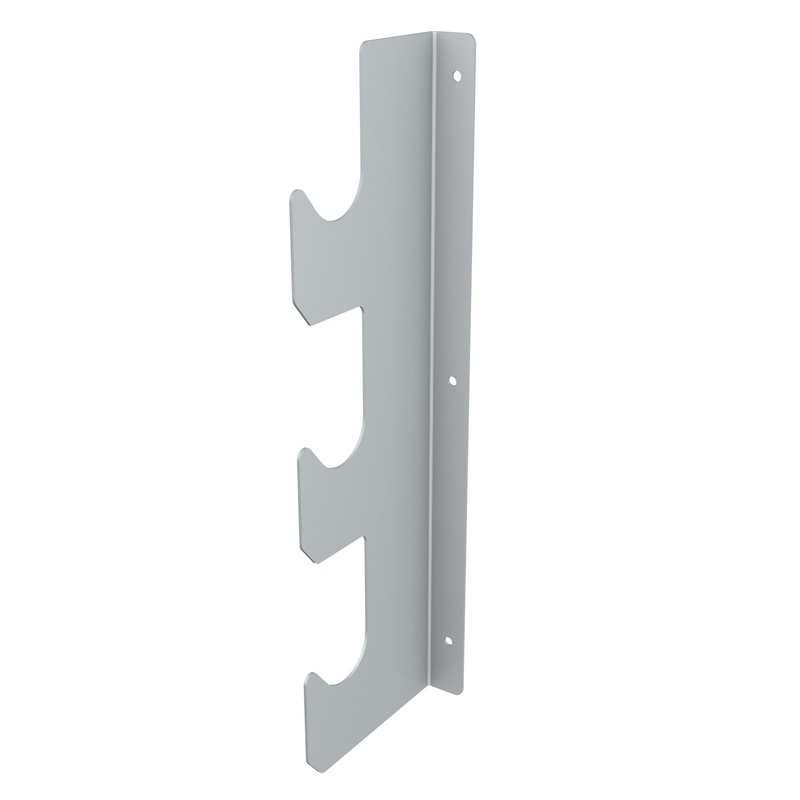 Держатель инструмента вертикальный предназначен для хранения и удобного размещения в кладовых, гаражах или хозпостройках лопат, граблей, вил, топоров, грифов от штанги и любого другого инструмента с длинными рукоятками.Держатель изготовлен из пластины толщиной 2мм и покрыт порошковой краской, предотвращающей ржавчину.На вертикальной планке кронштейна для крепления на стену предусмотрены 3 отверстия, что позволяет хранить на держатели достаточно большой вес.При креплении кронштейнов друг под другом возможно весь инвентарь разместить на небольшой площади стены.