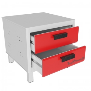 2 малых выдвижных ящика с внутренними размерами (ВхШхГ) 135х450х545мм (с учетом высоты ножек). Ножки в комплект не входят. Нагрузочная способность малых ящиков - 50кг., больших ящиков - 80кг. Полная нагрузочная способность подставок 700кг. Предназначены для установки под шкафы или тумбы, и используются для хранения различных инструментов и вещей. Установка подставки возможна в 2-х вариантах: непосредственно на пол или на ножки. Высота ножек составляет 125мм., соответственно высота подставки увеличивается до 577мм. Также подставки можно скомплектовать пластиковыми лотками, которые служат защитным покрытием для верхней части.