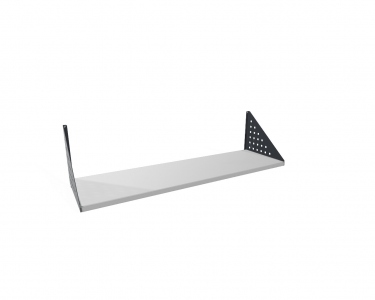 Полки предназначены для установки с внутренней части шкафа на заднюю и боковые стенки корпуса через овальные отверстия в гибах панелей, при помощи 4-х винтов М6х10мм. и самоконтрящихся гаек М6. Полки выполнены из конструкционной листовой оцинкованной стали ГОСТ 14918 толщиной 1.0мм., окрашены порошковой краской, стандартный цвет полок RAL 7047, кронштейнов RAL 7024, окраска дополнительно защищает и придаёт необходимый вид. На Кронштейнах полки возможна установка вешалок от изделий Систем Хранения. Полку можно устанавливать не только в ролетном шкафу, но и непосредственно на стену, подобрав и применив необходимый крепёж. Общая равномерно-распределённая нагрузка на полку до 80кг.