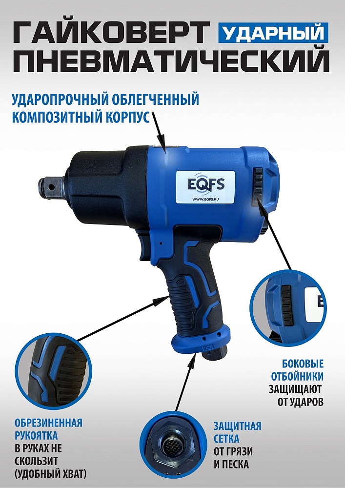 Наличия следов сильного удара/деформации (или разрушения) корпуса пневматического гайковерта.