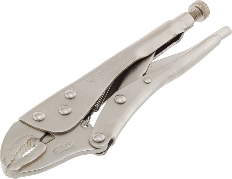 Описание Струбцина применяется при сварочных работах для поддержки и закрепления круглых деталей. Износостойкие захватные губки с крупной насечкой обеспечивают крепкий зажим. Инструмент имеет простую и удобную регулировку зева с помощью винта на рукоятке. Предусмотрен рычаг разблокировки для быстрого разжатия клещей. Конструкция рукоятки позволяет снять с руки значительную часть нагрузки при проведении работ. Это дает возможность работать одной рукой. Преимущества Надежная фиксация; Высокое давление опрессовки; Раствор губок для профиля: круглого до 40 мм, квадратного до 20 мм, шестигранного до 30 мм; Корпус из высокопрочной катаной стали выдерживает большие нагрузки; Режущие кромки для резки проволоки; Возможность работы одной рукой.