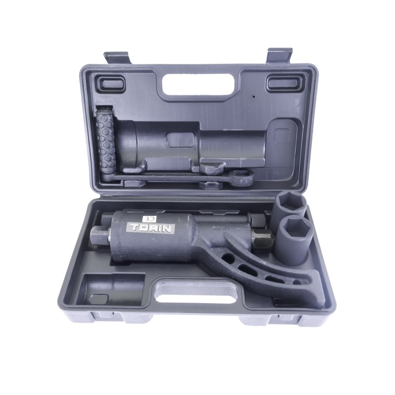 body{margin:0;padding:8px;} p{line-height:1.15;margin:0;white-space:pre-wrap;} ol,ul{margin-top:0;margin-bottom:0;} img{border:none;} li>p{display:inline;} table.blueTable {width: 100%; text-align: center; border-collapse: collapse;} table.blueTable td, table.blueTable th {border: 0px solid #AAAAAA; padding: 1px 1px;} table.blueTable tbody td { font-size: 13px;} table.blueTable thead {background: #EEEEEE;background: -moz-linear-gradient(top, #EEEEEE 0%, #cecece 66%, #EEEEEE 100%);background: -webkit-linear-gradient(top, #EEEEEE 0%, #cecece 66%, #C9C9C9 100%); background: linear-gradient(to bottom, #EEEEEE 0%, #EEEEEE 66%, #EEEEEE 100%);} table.blueTable thead th { font-size: 12px;font-weight: normal;color: #000000; text-align: center;border-left: 1px solid #EEEEEE;} table.blueTable thead th:first-child { border-left: none;} table.blueTable tfoot td {font-size: 12px;} table.blueTable2 {background-color: #FFFFFF; width: 100%;text-align: left;border-collapse: collapse;} table.blueTable2 td, table.blueTable th { border: 0px solid #AAAAAA;padding: 3px 2px;} table.blueTable2 tbody td {font-size: 13px;} table.blueTable2 tr:nth-child(odd) { background: #EEEEEE;} table.blueTable2 tfoot td { font-size: 14px;} table.blueTable2 tfoot .links { text-align: right;} table.blueTable2 tfoot .links a{display: inline-block;background: #1C6EA4;color: #FFFFFF;padding: 2px 8px;border-radius: 5px;} Назначение: Усилитель крутящего момента (гайковерт грузовой механический) применяется для откручивания сильно затянутого или прикипевшего крепежа. Использование данного инструмента не требует электричества и сжатого воздуха. Преимущества: Планетарный механизм позволяет создавать большое усилие на валу с минимальной тратой сил. Специальная краска на корпусе обеспечивает надежную защиту от коррозии и надежное удержание инструмента. Точный контроль и плавность передачи усилия сводит к минимуму вероятность повреждения крепежа. Технические характеристики: Размер присоединительного квадрата 1" Передаточное число, вход/выход 1:58 MAX усилие на выходе 3800 Нм MAX усилие на входе 62,5 Нм Комплектация: Гайковерт 1 шт Торцевая головка 32 мм 1 шт Торцевая головка 33 мм 1 шт Рукоятка 1 шт Переходник рукоятка/головка 1 шт Кейс 1 шт Упаковка: Длина, мм 370 Ширина, мм 360 Высота, мм 220 Вес, кг 8,6