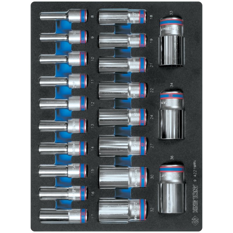 KING TONY Набор глубоких торцевых головок 1/2", двенадцатигранные, 8-36 мм, ложемент, 21 предмет KING TONY 9-4221MRV купить в Нижнем Новгороде цена ✅ - Все для СТО