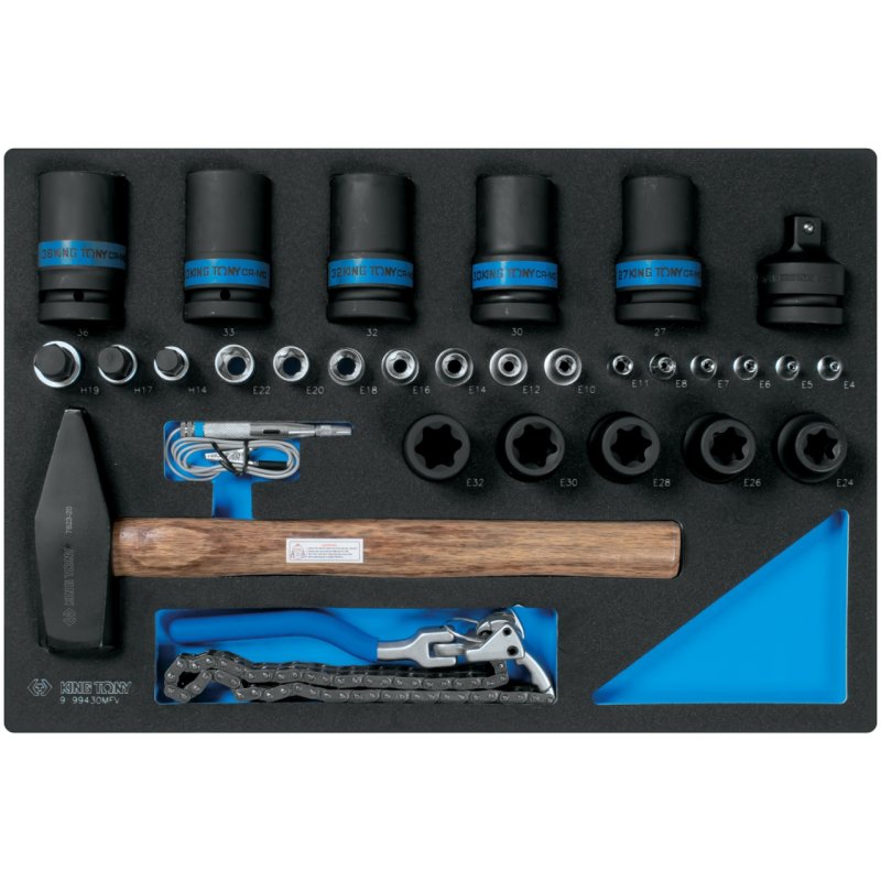 KING TONY Набор ударных головок 1", головок Torx Е-стандарт, молоток, съемник, тестер, ложемент, 30 предметов KING TONY 9-99430MFV купить в Нижнем Новгороде цена ✅ - Все для СТО