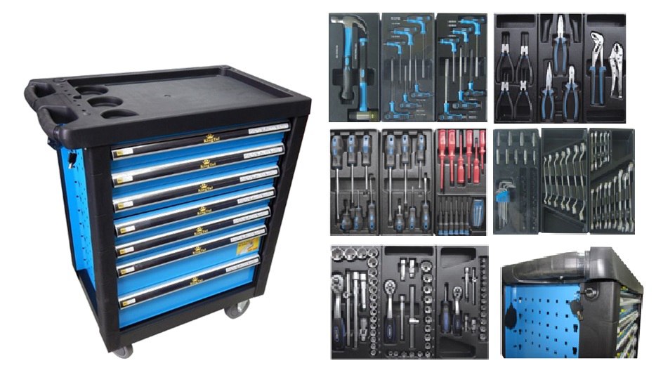 KT50176B KINGTUL Тележка инструментальная 7-ми полочная укомплектованная инструментом 176пр. (синяя)