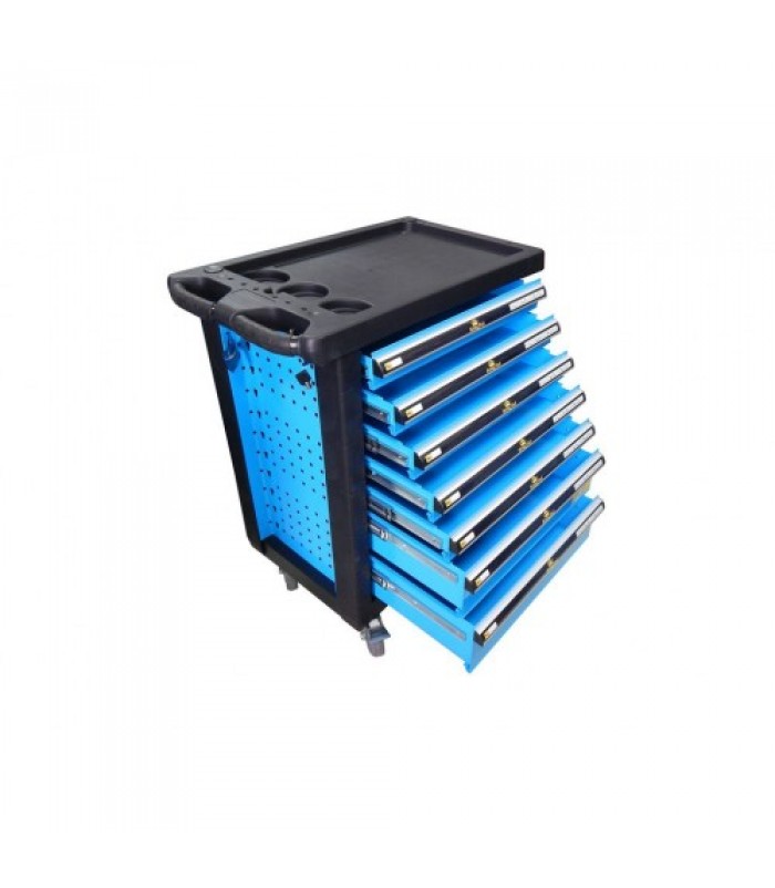 Тележка инструментальная 7-ми полочная укомплектованная инструментом 176пр. (синяя) с пластиковой защитой корпуса + перфорация