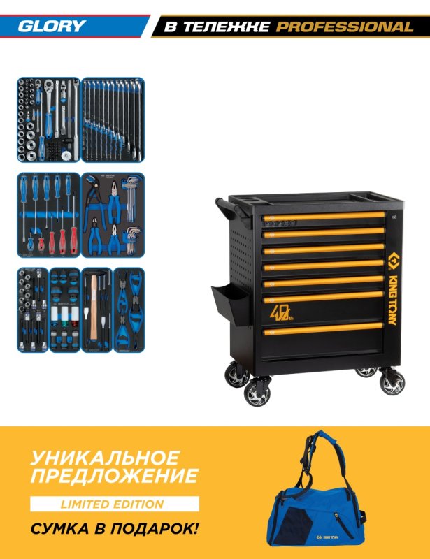 Набор инструментов 152 предмета, "GLORY", в черной тележке KING TONY 9G38-152MRV40 купить в Нижнем Новгороде цена ✅ - Все для СТО