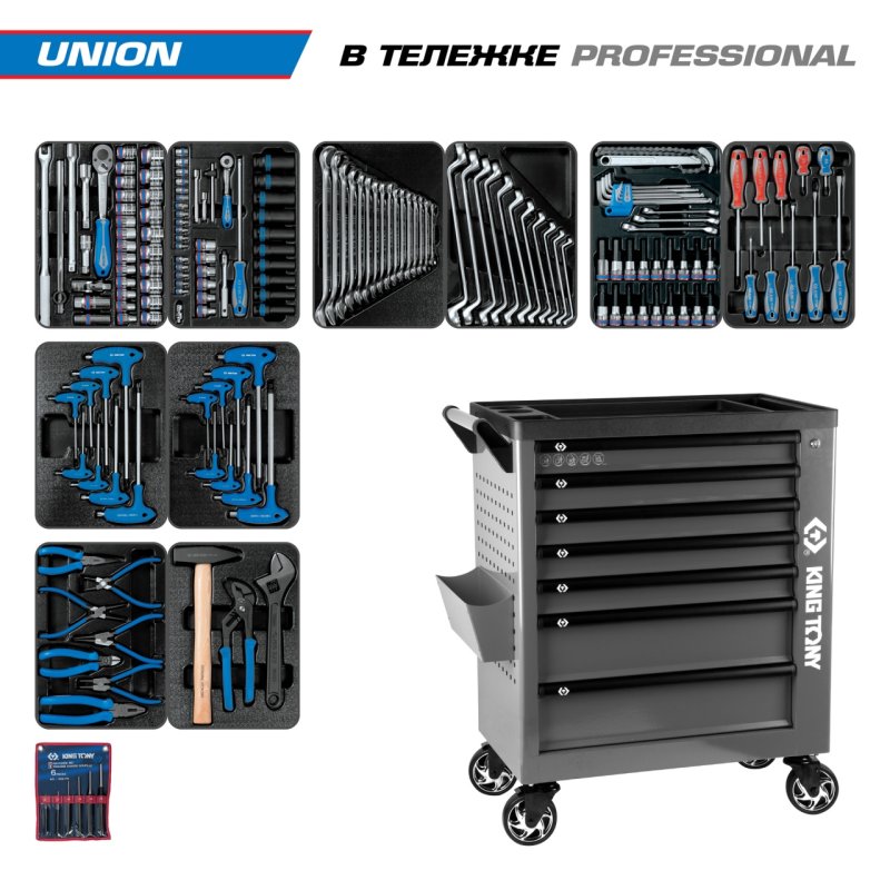 Набор инструментов 173 предмета, "UNION", в серой тележке KING TONY 9G38-000MRG купить в Нижнем Новгороде цена ✅ - Все для СТО