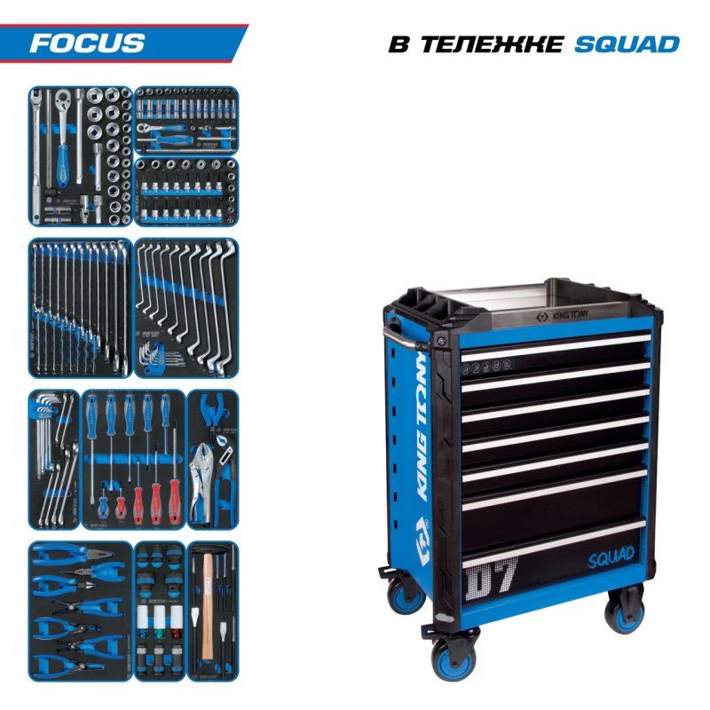 Набор инструментов 188 предметов, "FOCUS", в синей тележке KING TONY 9SQ31-188MRV купить в Нижнем Новгороде цена ✅ - Все для СТО