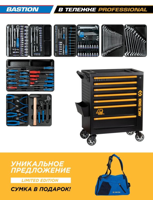 Набор инструментов 204 предмета, "BASTION", в черной тележке KING TONY 9G38-100MR40 купить в Нижнем Новгороде цена ✅ - Все для СТО