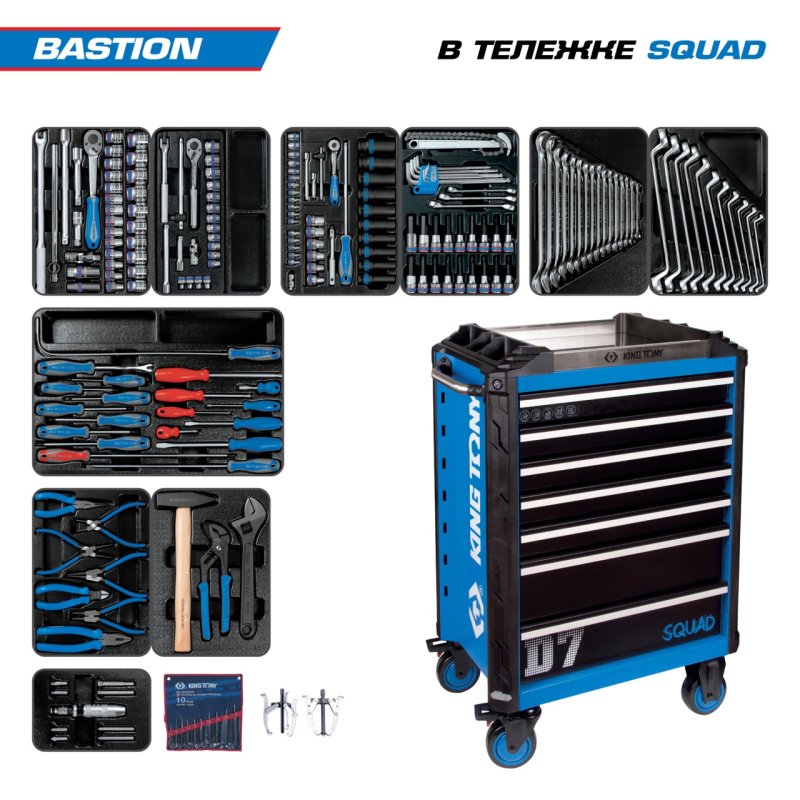 Набор инструментов 204 предмета, "BASTION", в синей тележке KING TONY 9SQ31-100MR купить в Нижнем Новгороде цена ✅ - Все для СТО