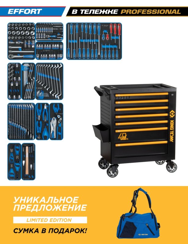 Набор инструментов 235 предметов, "EFFORT", в черной тележке KING TONY 9G38-235MRV40 купить в Нижнем Новгороде цена ✅ - Все для СТО