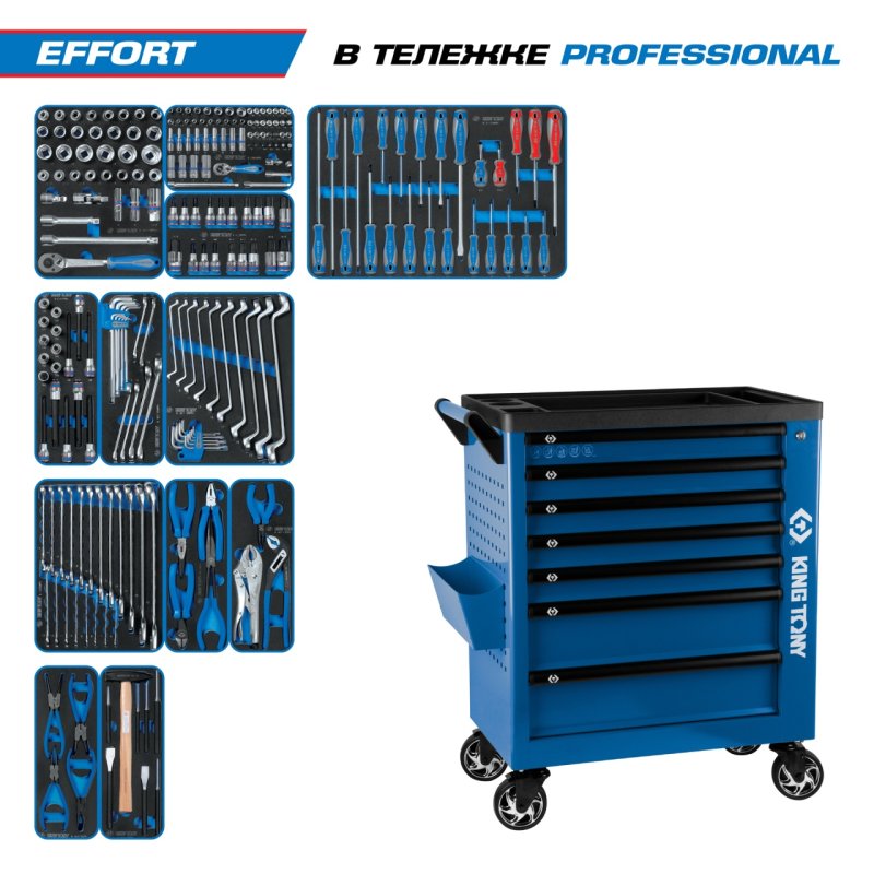 Набор инструментов 235 предметов, "EFFORT", в синей тележке KING TONY 9G38-235MRVB купить в Нижнем Новгороде цена ✅ - Все для СТО
