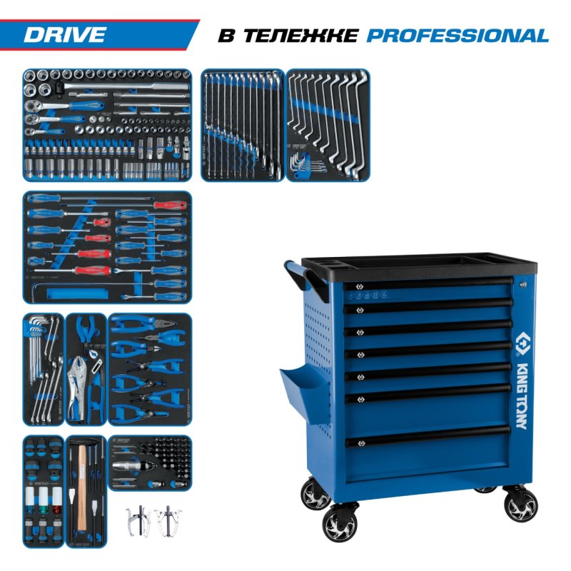 Набор инструментов 251 предмет, "DRIVE", в синей тележке KING TONY 9G38-251MRVB купить в Нижнем Новгороде цена ✅ - Все для СТО