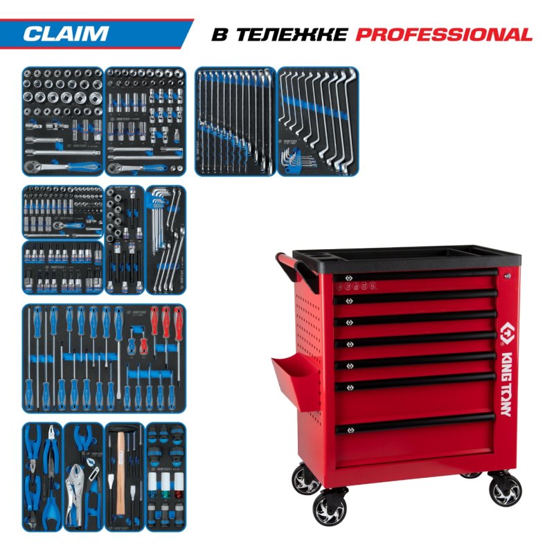 Набор инструментов 286 предметов, "CLAIM", в красной тележке KING TONY 9G38-286MRVR купить в Нижнем Новгороде цена ✅ - Все для СТО