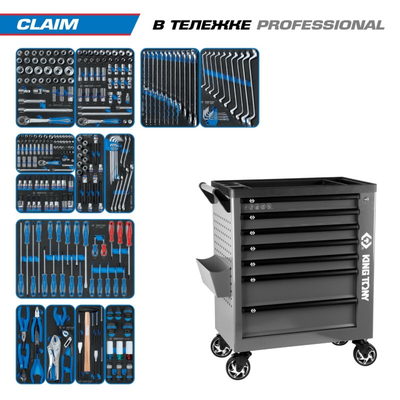 Набор инструментов 286 предметов, "CLAIM", в серой тележке KING TONY 9G38-286MRVG купить в Нижнем Новгороде цена ✅ - Все для СТО