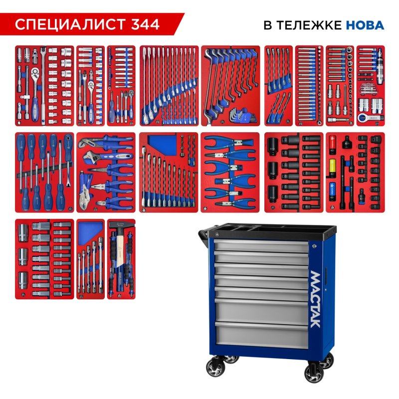 Набор инструментов 344 предмета, "СПЕЦИАЛИСТ 344", в синей тележке МАСТАК 50-07344B купить в Нижнем Новгороде цена ✅ - Все для СТО