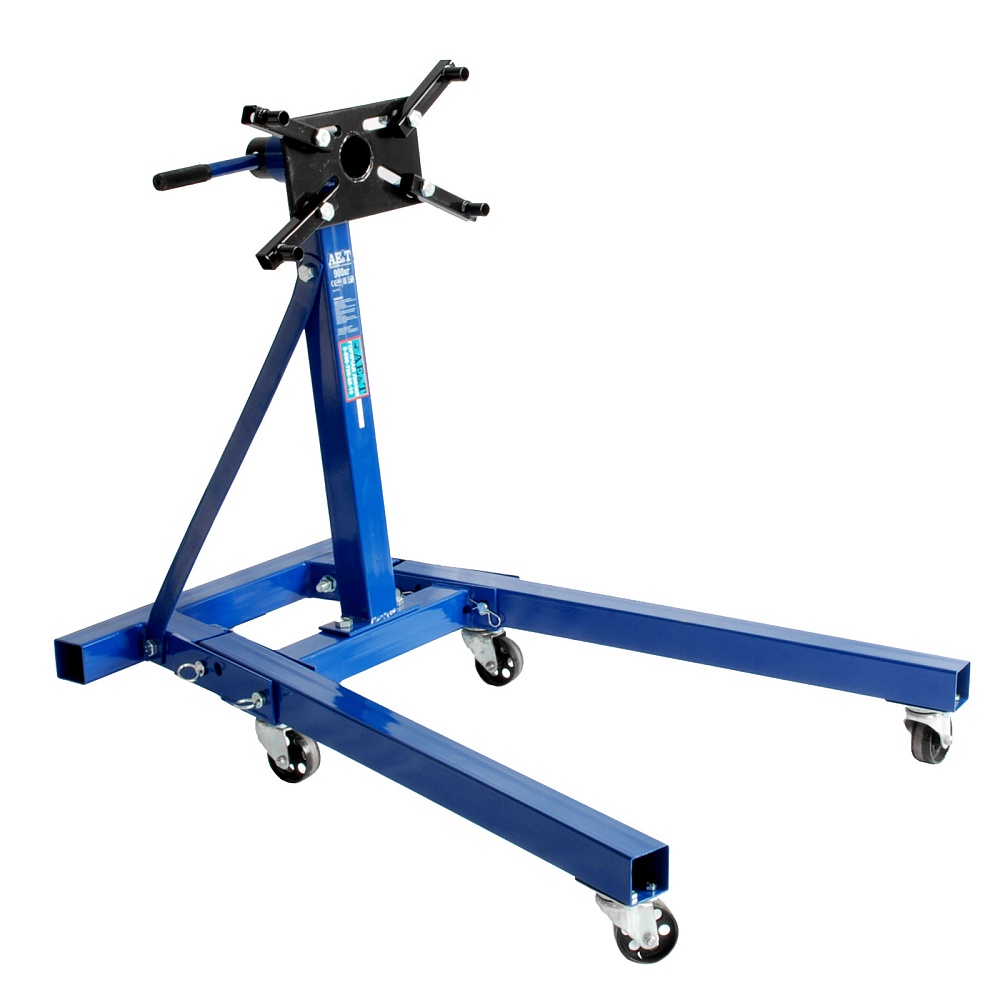 Кантователь AE&T Т63005 имеет усиленную складную конструкцию, а также оснащен мощной рамой с механическим приводом с поворотом на 360°. Это позволяет использовать этот стенд для работы с узлами и механизмами большой массы (до 900 кг). Для транспортировки в конструкции устройства имеется четыре колеса.