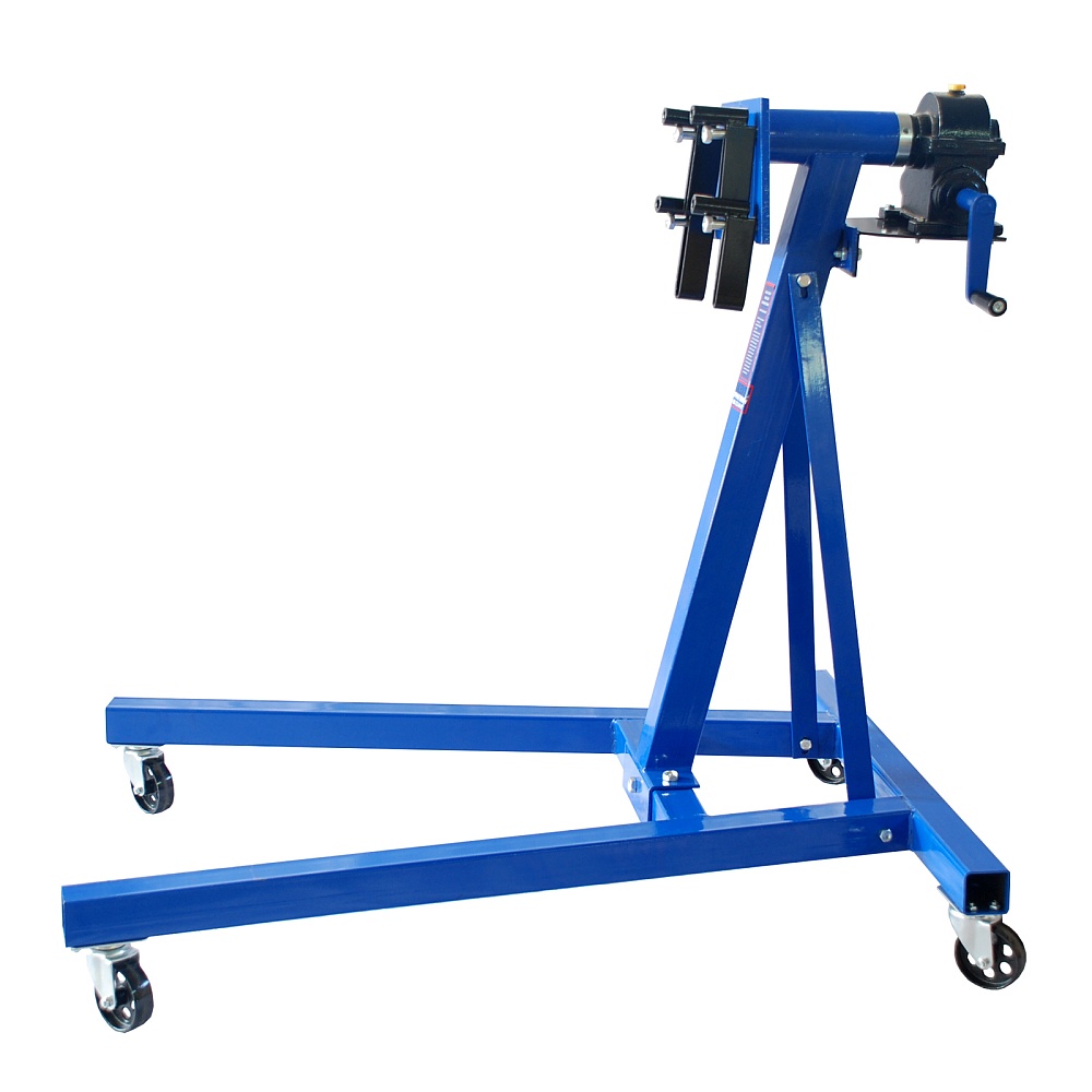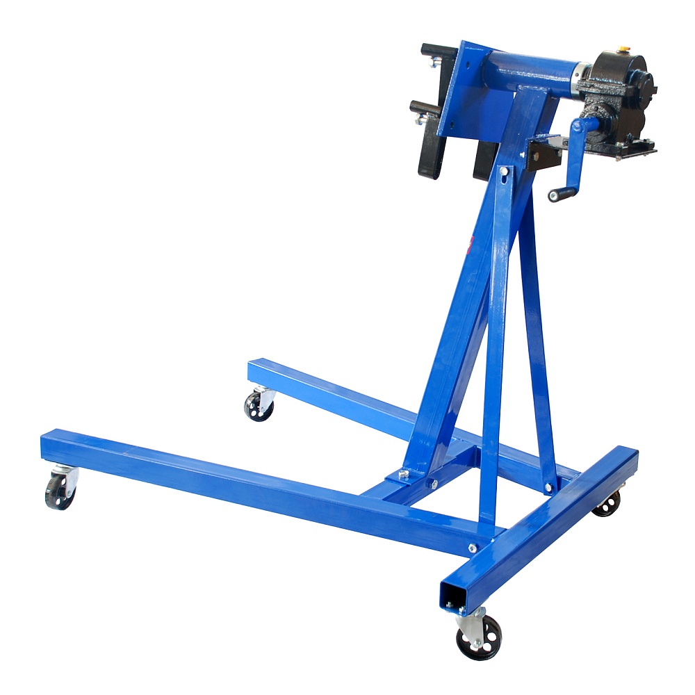 Кантователь AE&T Т63005W имеет складную усиленную конструкцию, а также оснащен мощной рамой и редуктором. Это позволяет использовать этот стенд для работы с узлами и механизмами большой массы (до 900 кг). Для транспортировки в конструкции устройства имеется четыре колеса.