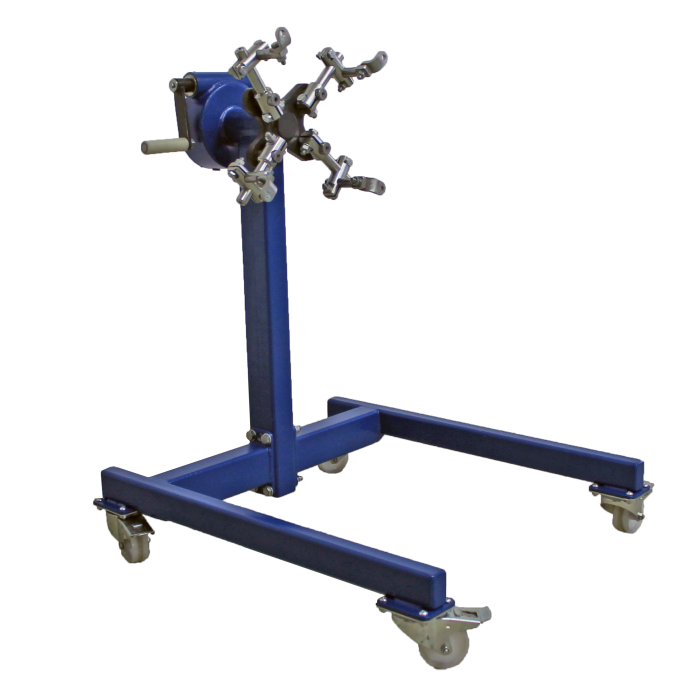г/п 500 или 800 кг. на выбор.  Привод механический, ручной. Высота оси вращения от уровня пола 810 мм, габариты: длина/ширина/высота 1130*830*960 мм, вес:150 кг. Предназначен для сборки-разборки двигателей ЗМЗ, -402, -4021, -406; ВАЗ 2101-2110; ММЗ-245 и др. в подвешенном состоянии.