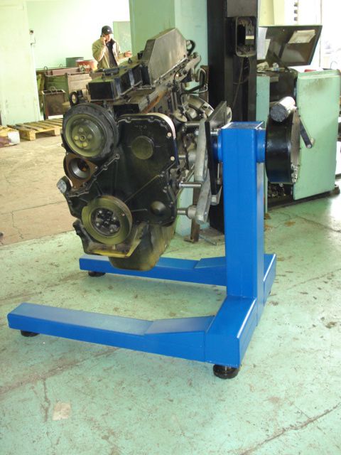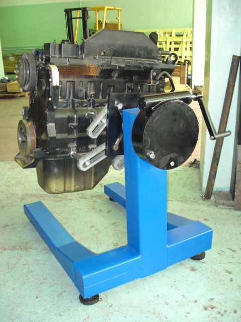 Устройство для кантования двигателей и коробок передач с вращающимся блоком и универсальным креплением.