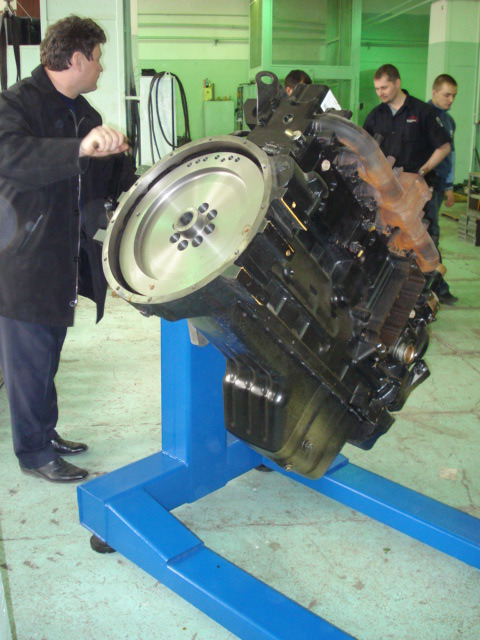 • Удобство работы обеспечивается за счет самотормозящегося червячного редуктора, который позволяет повернуть и зафиксировать закрепленный на стенде двигатель или другой узел в нужном положении.