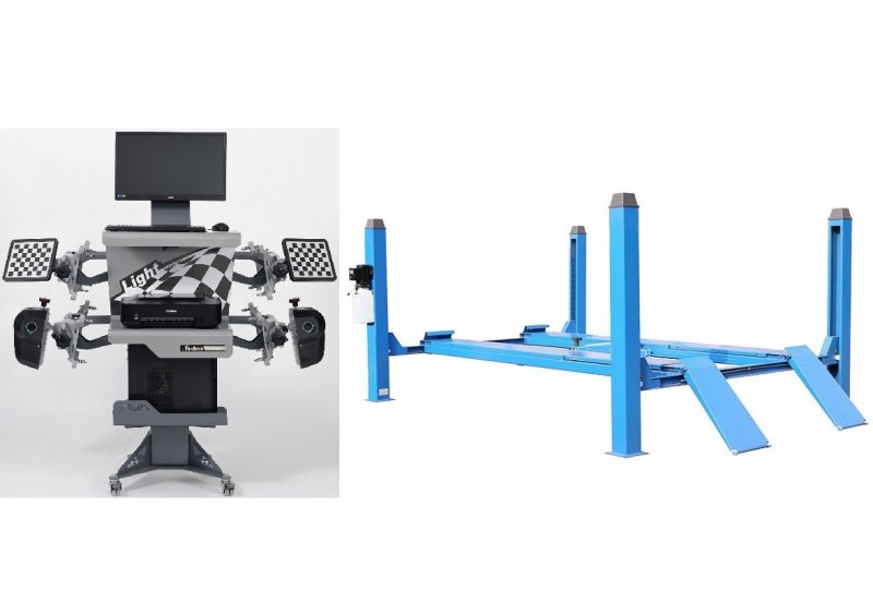 Комплект TS5.5D-4L Подъемник 4-хст. г/п 5,5 т, 380 V с траверсой 2,5+6202 Стенд сход развал 3D