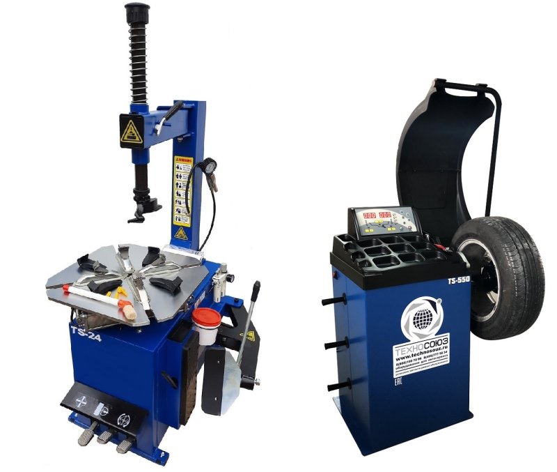 Комплект TS-24 Станок шиномонтажный. Полуавтоматический. Квадратный стол. Для дисков: внешний 12÷22”, внутренний 11÷24”. Усилие отрыва покрышки 2700 кг. В комплекте: пистолет для подкачки шин + монтажка + пластиковые накладки на зажимные кулачки + регулятор давления с влагоотделителем и манометром. + TS-550 Балансировочный станок (с лазером) Для дисков: 10÷24” (256-610 мм). В комплекте: кожух с автозапуском + клещи + кронциркуль + быстрозажимная гайка + набор конусов.