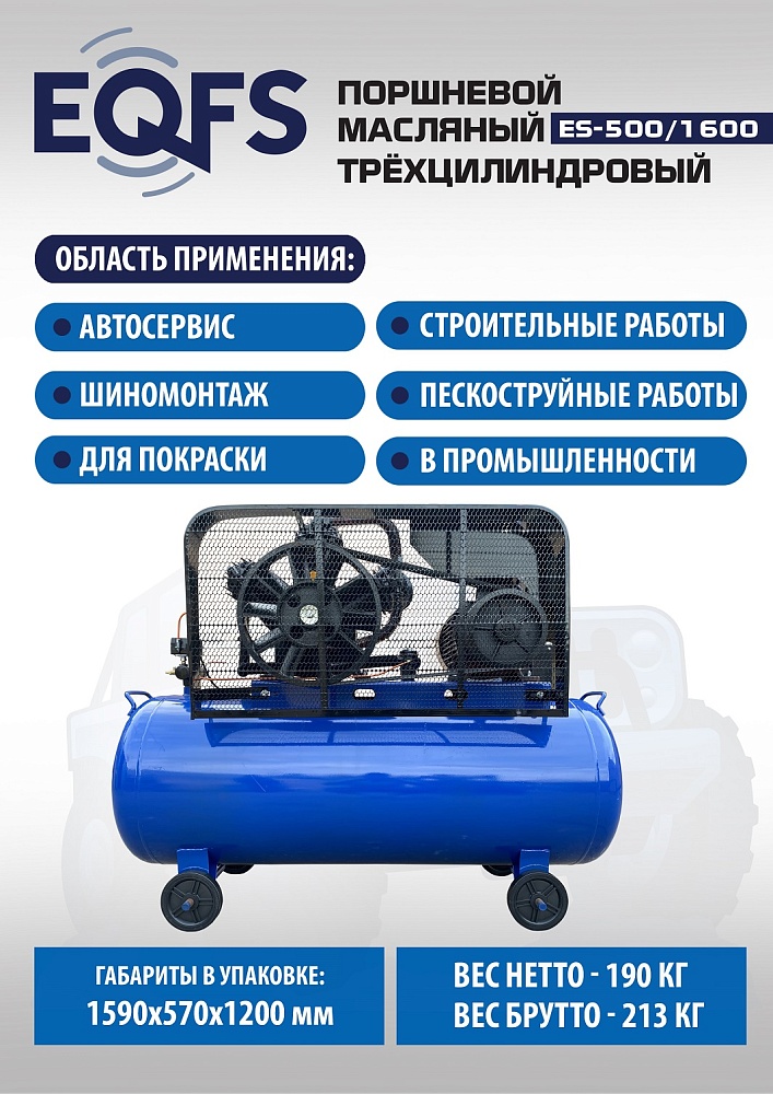ES-500/1600 Компрессор поршневой трехцилиндровый купить в Нижнем Новгороде цена ✅ - Все для СТО