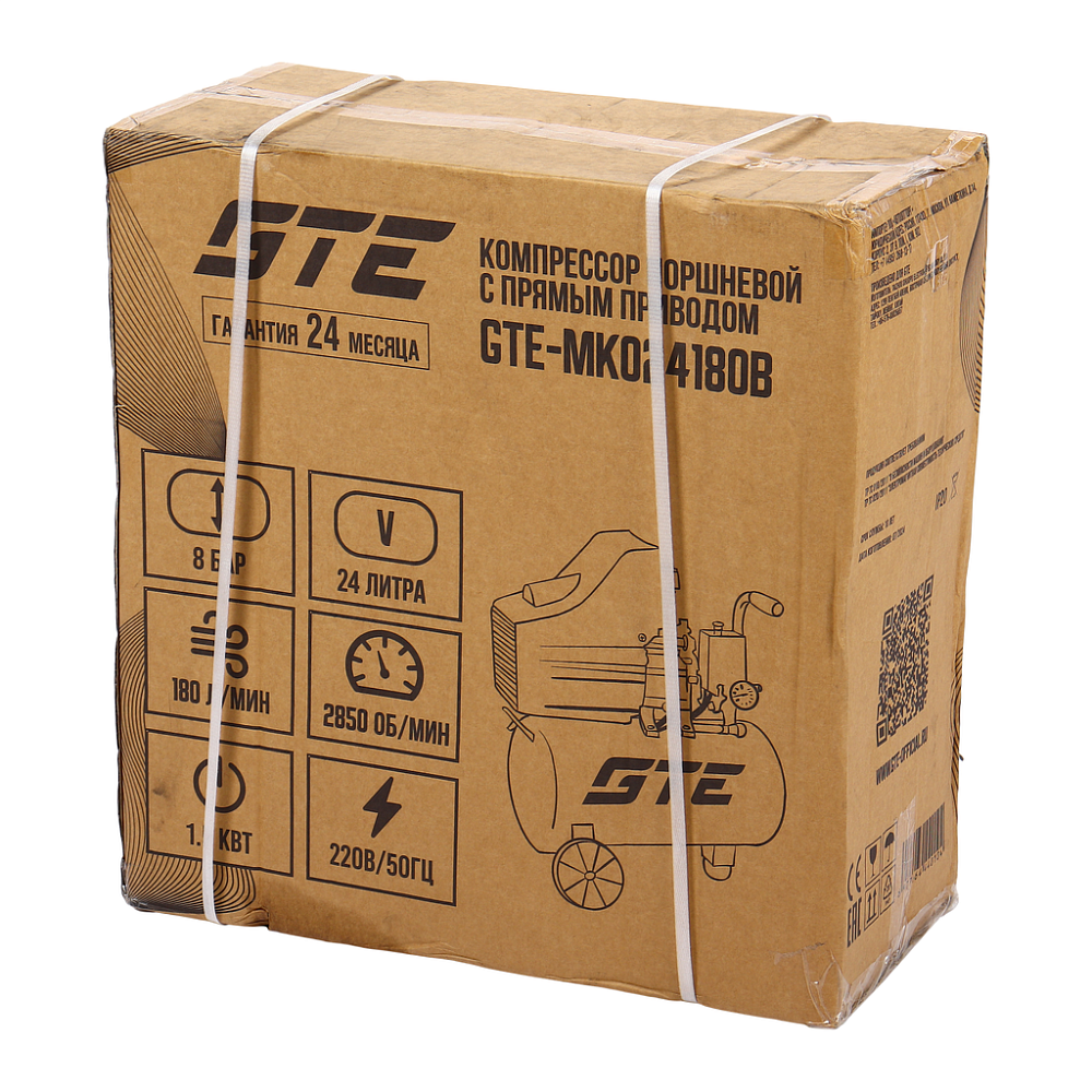 GTE-MK024180B Компрессор поршневой с прямым приводом 220В 180л/мин. ресивер-24л