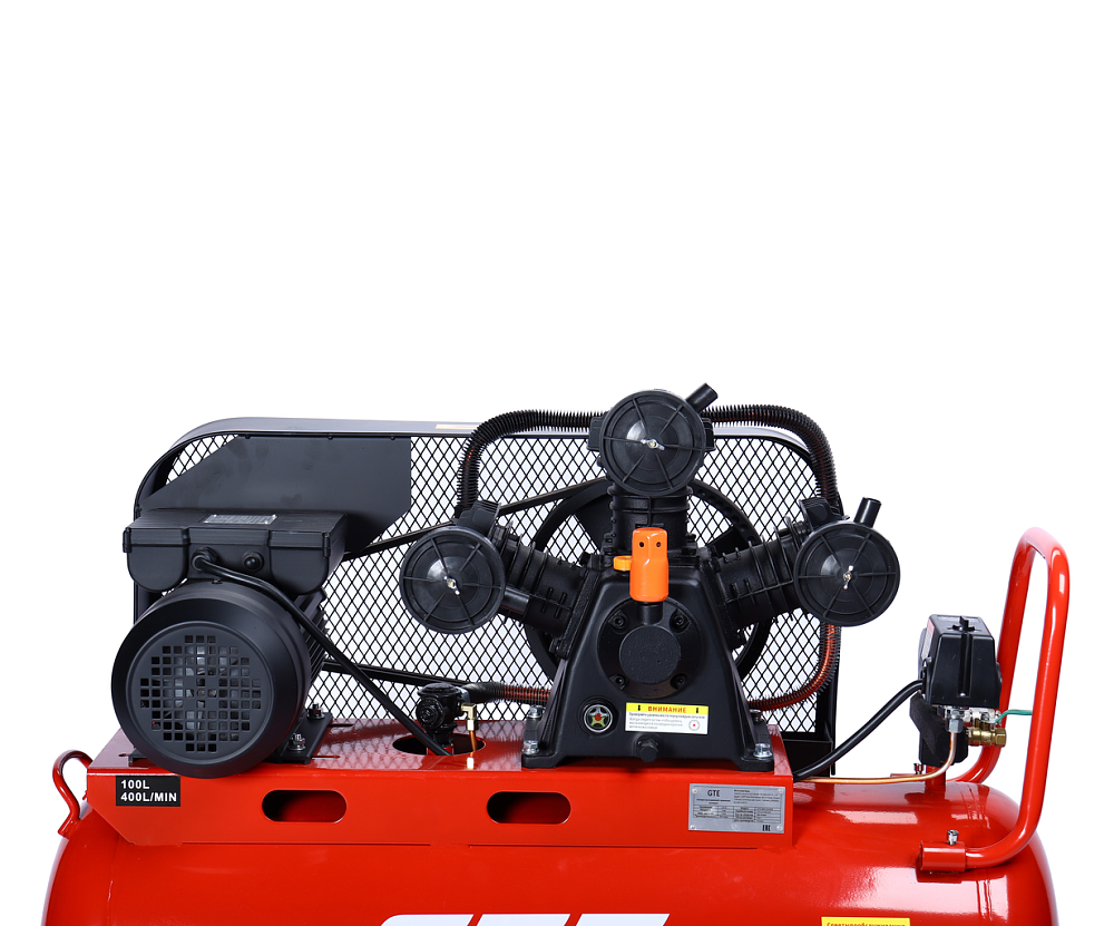 Компрессор поршневой с ременным приводом. Ресивер 100 л, производительность 400 л/мин. Напряжение 220 В. Мощность: 3 кВт. Применим в автосервисе, шиномонтаже и в гараже. Гарантия 24 месяца.