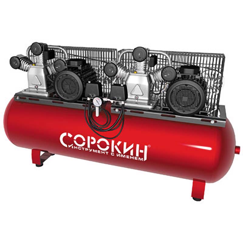 Компрессор поршневой 10 атм, 10кВт (тандем), 380В, 1900л/мин, горизонтальный ресивер 500л СОРОКИН купить в Нижнем Новгороде цена ✅ - Все для СТО