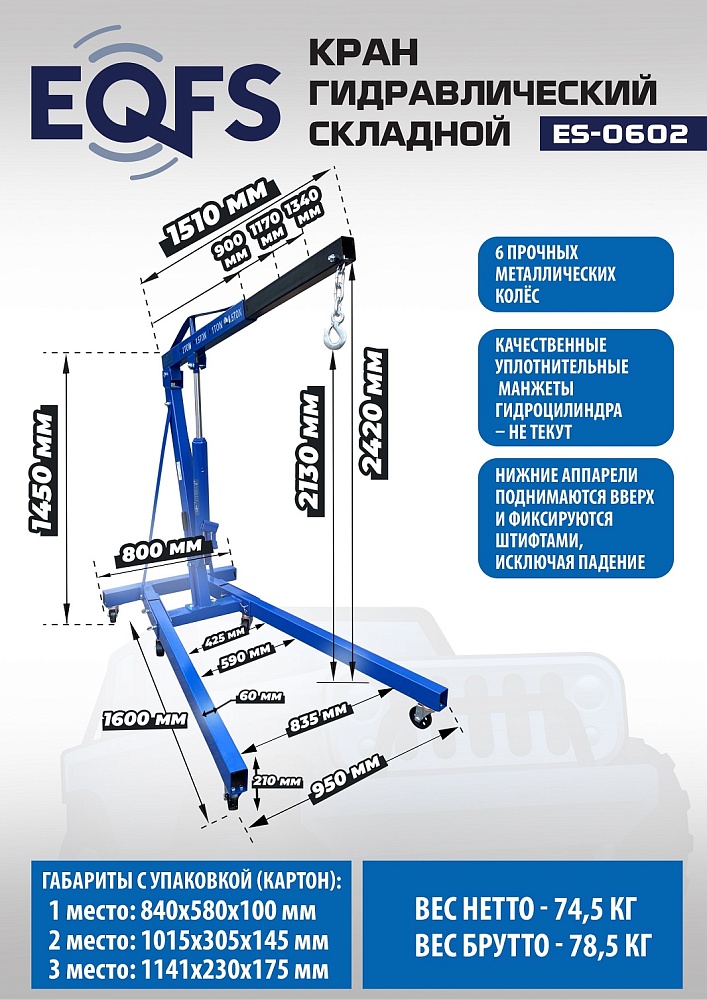 ES-0602 Кран гаражный, 2 т купить в Нижнем Новгороде цена ✅ - Все для СТО