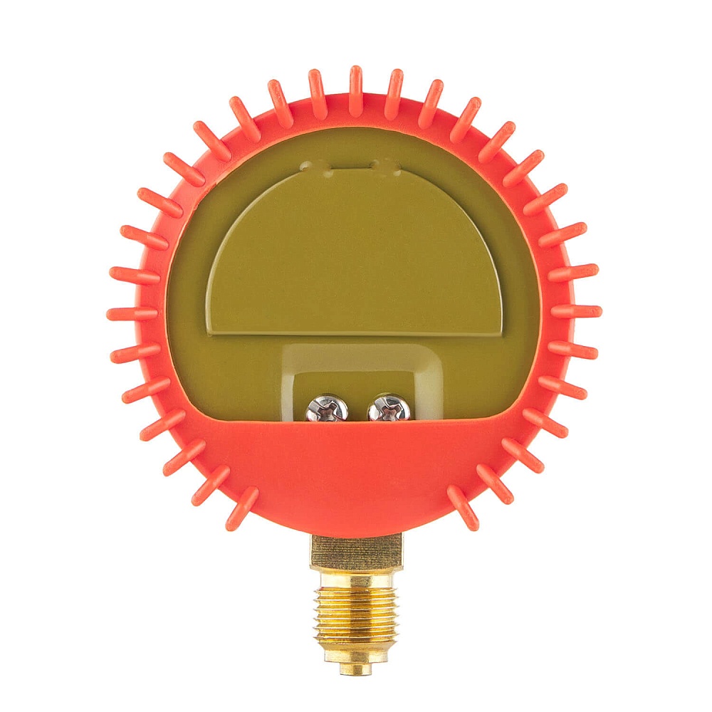 Диаметр корпуса манометра 63 мм. Корпус дополнительно защищен резиновым кожухом для сохранности манометра от механических повреждений.