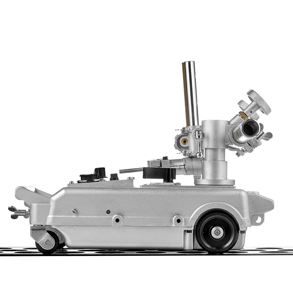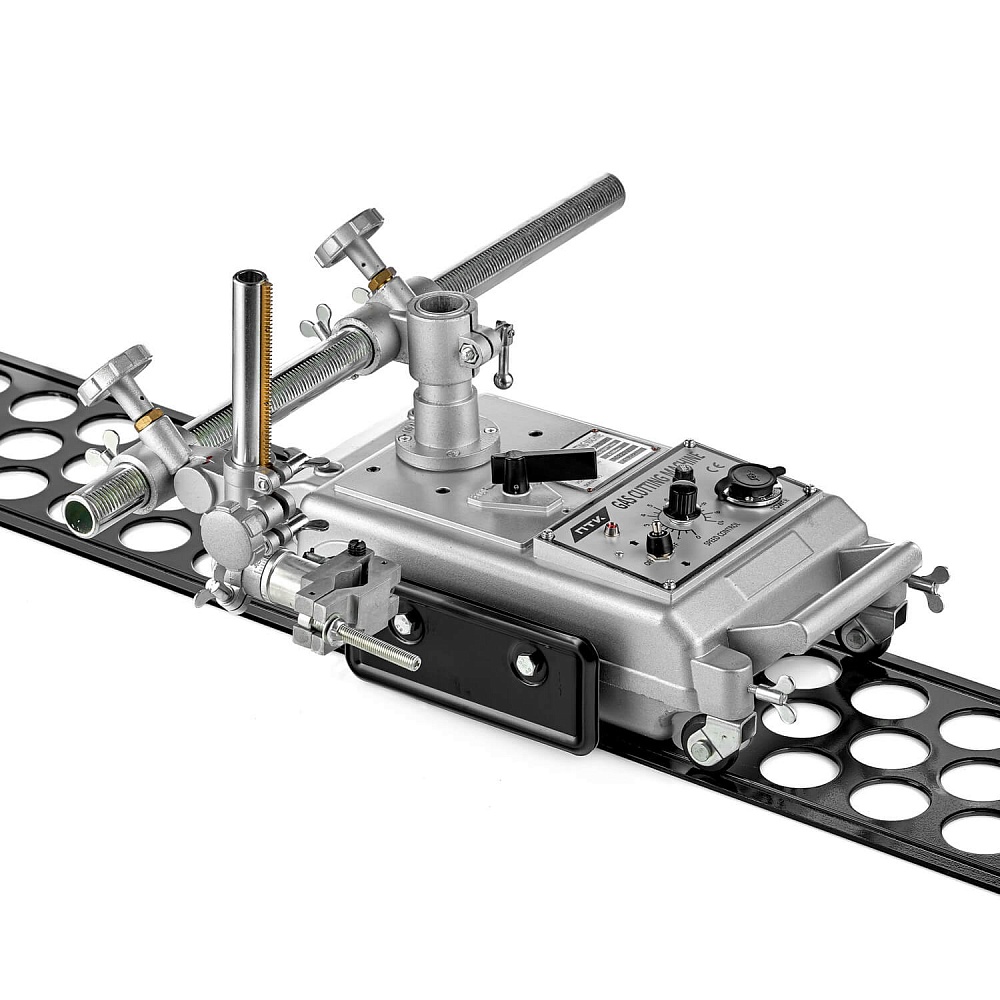 Машина оснащена электрическим приводом, скорость реза 50—5000 мм/мин. Для удобного и точного перемещения машины по листу в комплект входит направляющий рельс.