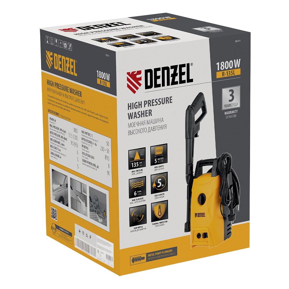 Моечная машина высокого давления R-135L, 1800 Вт, 135 бар, 360 л/ч Denzel купить в Нижнем Новгороде цена ✅ - Все для СТО