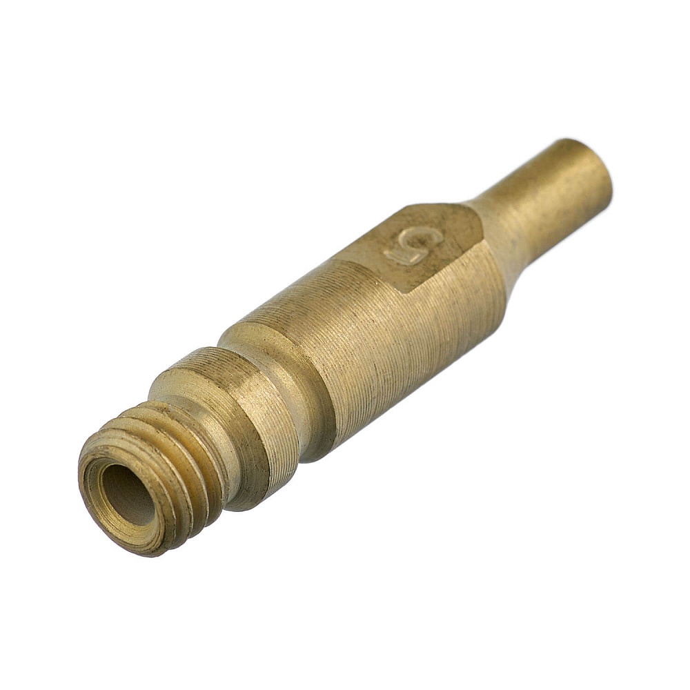 Латунный внутренний мундштук №5 для инжекторных пропановых резаков Р3П, Р3ПУ, ацетиленовых резаков Р3А и пропановых резаков Р333, Р333У (тип «Маяк»). Толщина разрезаемого металла 100–200 мм.